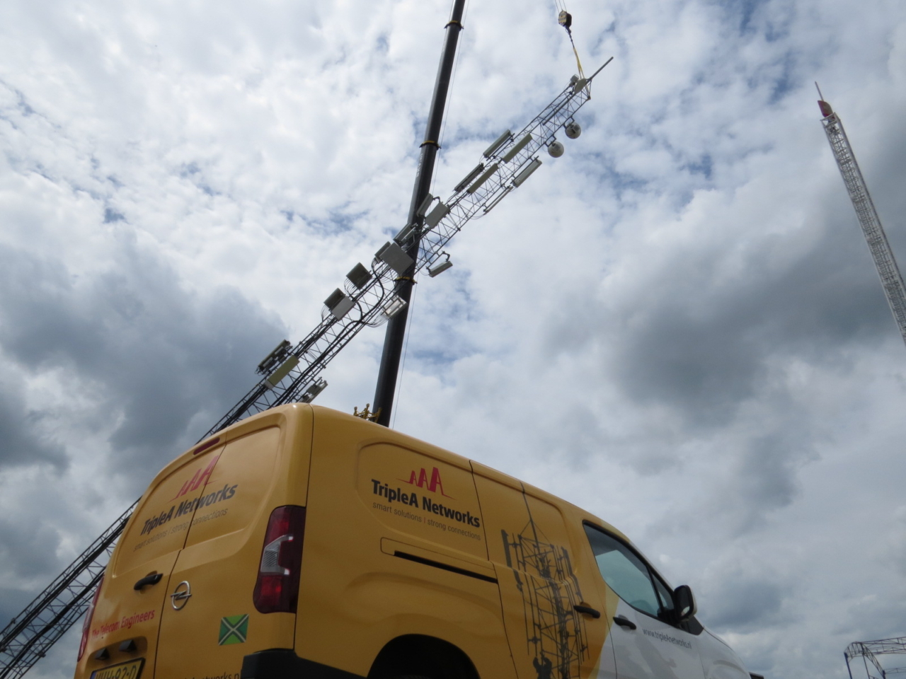 TripleA is een bedrijf dat elke dag uitdagingen probeert op te lossen. Onze klanten, de grote aanbieders van mobiel netwerk in Nederland, denk aan bijvoorbeeld Odido, Vodafone, KPN) garanderen tegenwoordig landelijke dekking op het mobiele netwerk. Dat betekent; jij moet altijd en overal kunnen Facebooken, bellen of X’en. Maar dat signaal is er niet zomaar, dat dient gebouwd, gerenoveerd en onderhouden te worden. En daar komt TripleA om de hoek. We ontvangen een opdracht vanuit een provider, denken binnen de engineeringsfase elk mogelijk scenario uit en tot slot bouwen onze monteurs op locatie een ijzersterke verbinding. Of het nou gaat de gewone zendmast bij jou op de hoek of het plaatselijke festival. Want nee, het netwerk is niet geschikt dat er ‘opeens’ 25.000 mensen in een weiland staan feest te vieren. Ook daarvoor zet TripleA zich in. Recent bouwden we tijdelijke antenne-opstelpunten voor onder andere de Formule 1 in Zandvoort, Mysteryland en de Zwarte Cross. Neem vooral een kijkje op onze socials! 😉