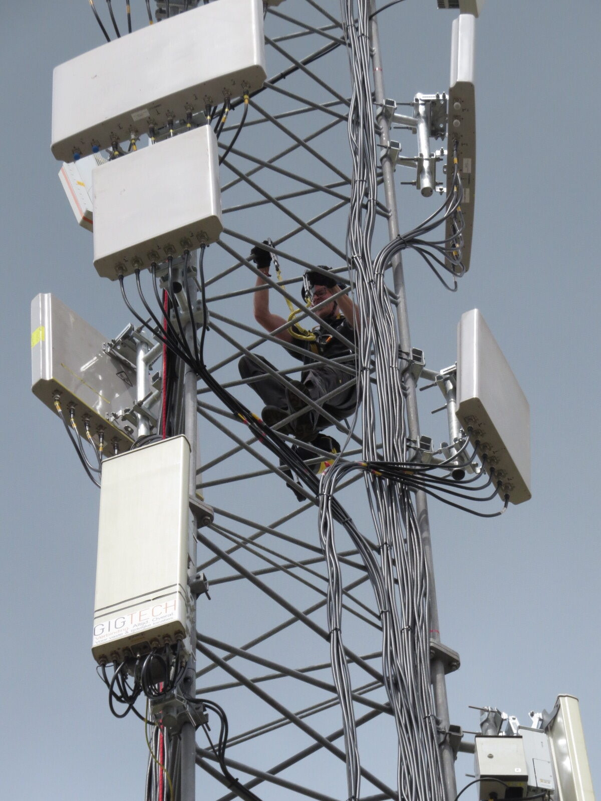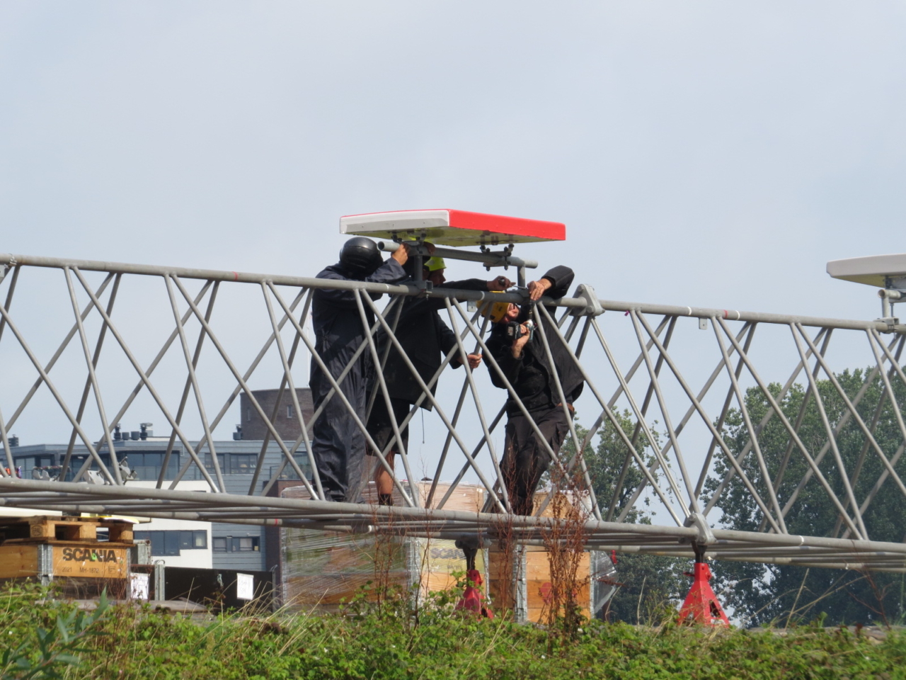 En daar komen zij om de hoek! De helden die elke dag, weer of geen weer, zorgen dat het werk klaarkomt. Als monteur antennebouw kom je op grote hoogtes (voor jouw beeldvorming; een normale zendmast gaat zo’n 40 meter de lucht in. Zet maar eens veertig stappen en beeld je die afstand in de lucht in…) en werk je optimaal met elkaar samen.